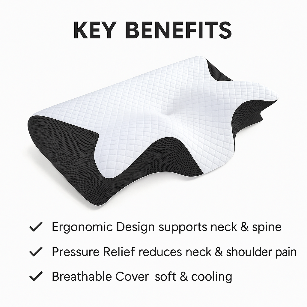 Wake pain-free naturally. Supports your cervical curve all night. Adapts to your sleeping position. Gentle enough for sensitive necks. Ends morning stiffness fast. Restores confident posture.